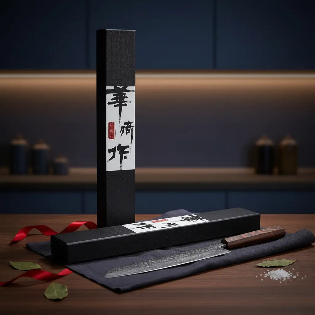 Présenté dans une somptueuse boîte aux motifs japonais et à l’inscription calligraphiée, chaque couteau devient un véritable objet d’exception. Ce packaging raffiné, à la fois sobre et luxueux, évoque l’élégance du Japon traditionnel. Idéal pour un cadeau d’anniversaire, de Noël ou de fête des pères, il sublime le plaisir d’offrir autant que celui de recevoir. Un écrin digne des plus grands maîtres couteliers.