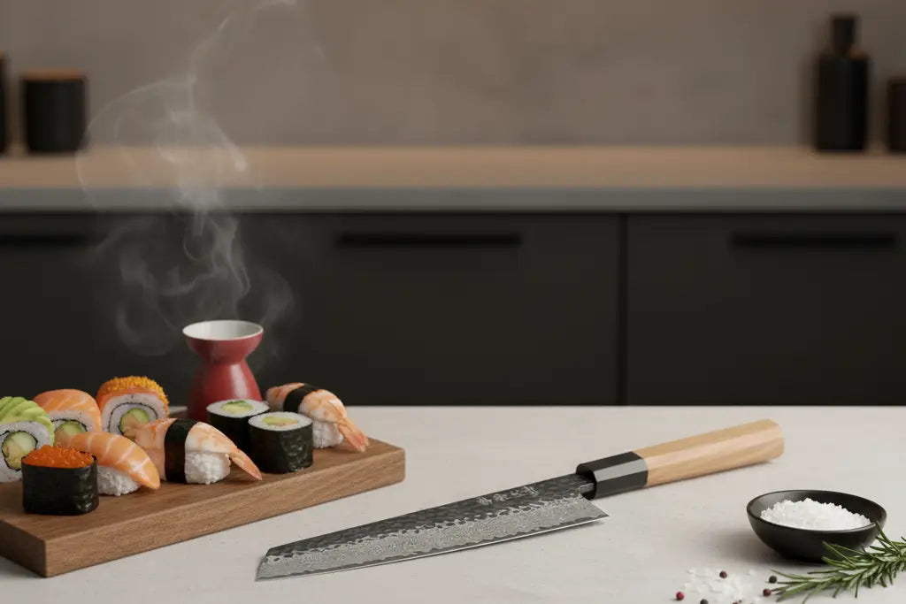 Couteau hybride aux allures de katana, le kiritsuke incarne la polyvalence d’un chef et la précision d’un maître sushi.