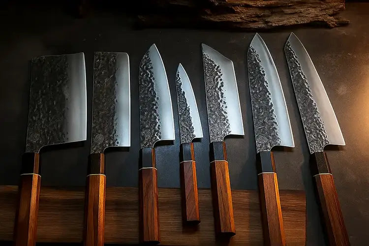 Set de Sept Couteaux Japonais en Acier Damas - Collection Yasuko
