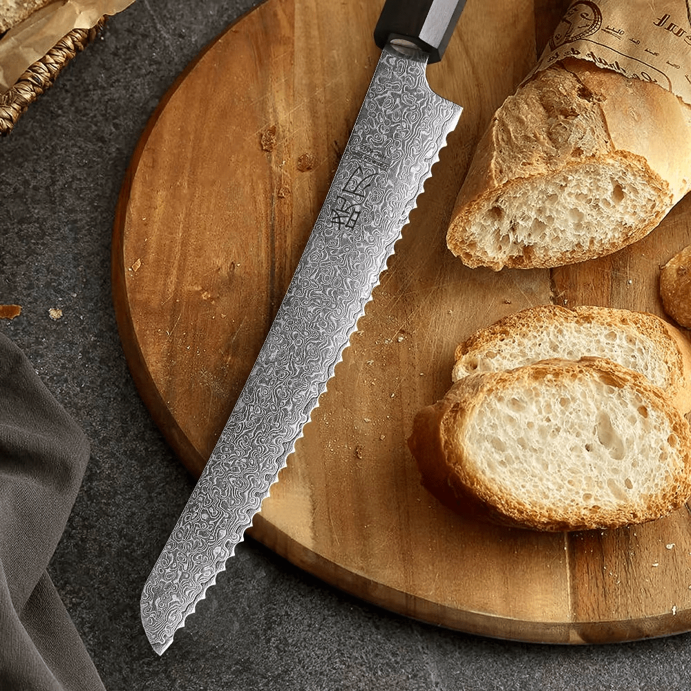 Couteau Japonais A Pain en Acier Damas - Collection Takedo