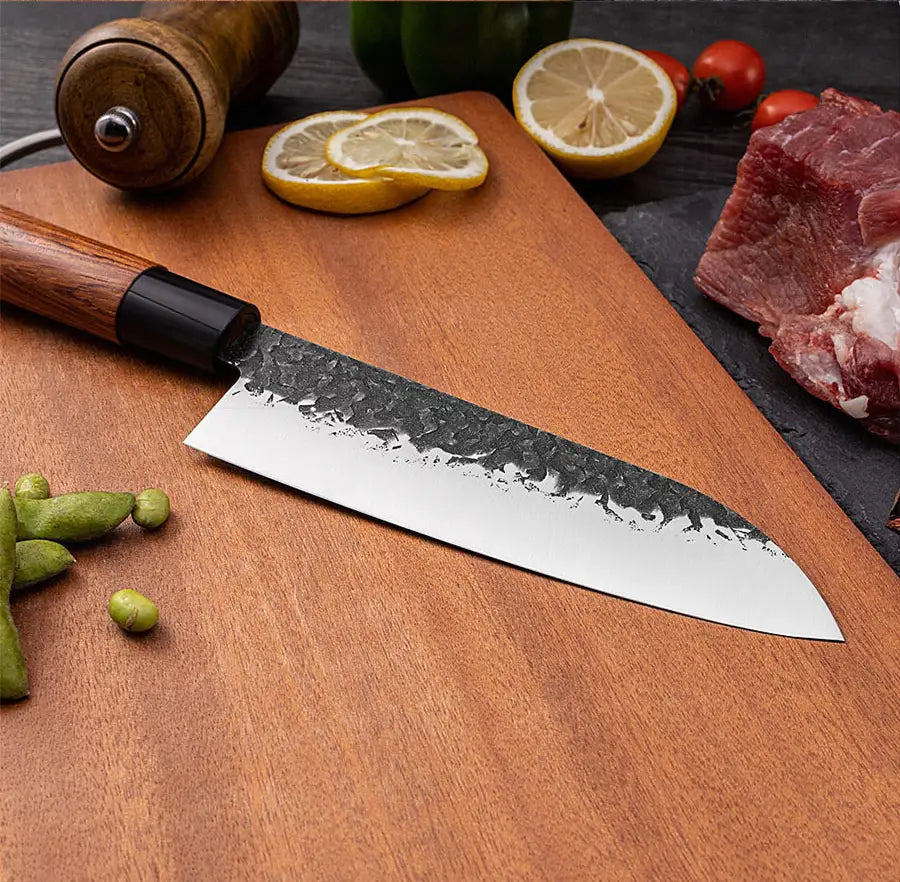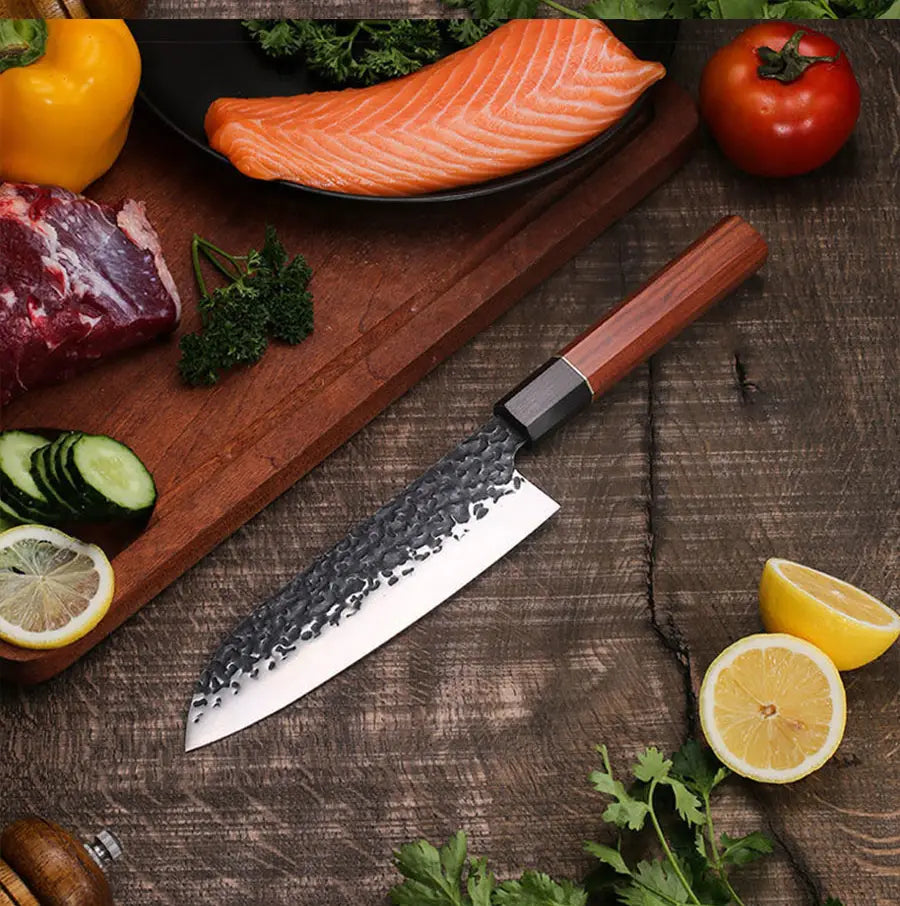 Idéal pour les chefs expérimentés comme pour les amateurs passionnés, ce Santoku incarne la quintessence de l'art culinaire japonais. Robuste, élégant et d'une précision inégalée, il transformera chaque plat en une véritable œuvre d’art.