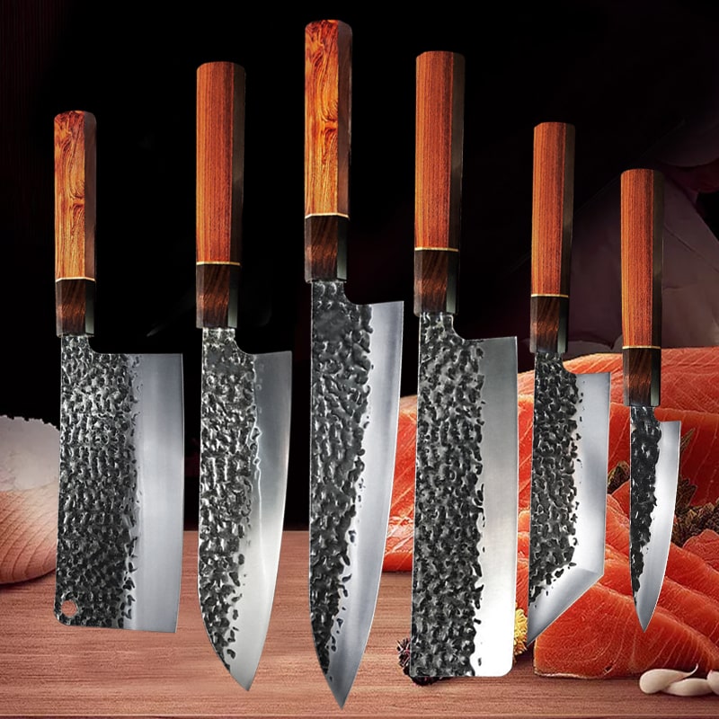 Découvrez l'excellence culinaire avec notre set complet de sept couteaux japonais en acier Damas, une fusion parfaite de tradition ancestrale et d'innovation moderne.